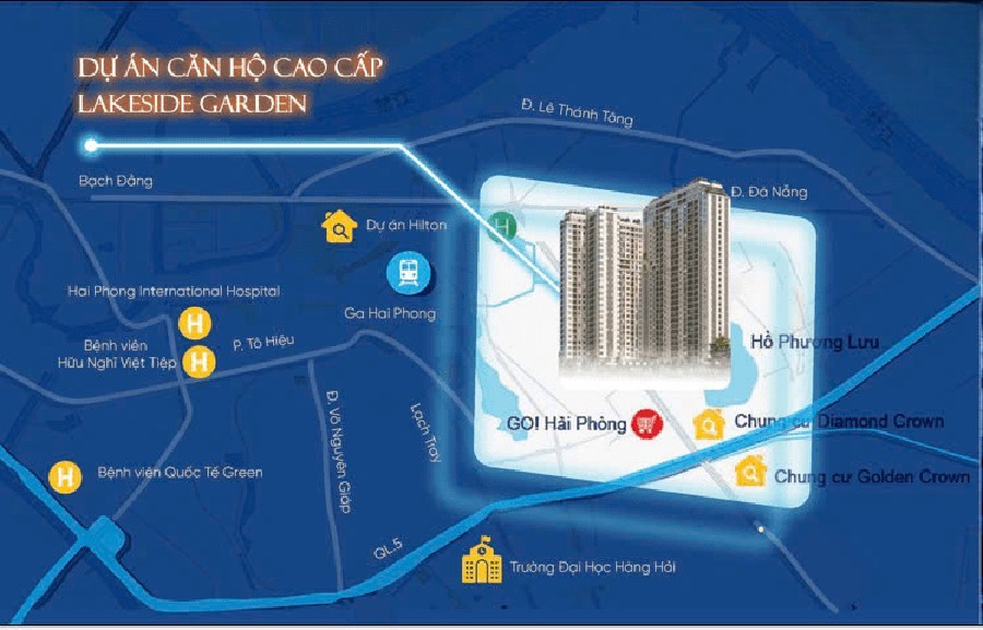 Lakeside Garden là dự án căn hộ cao cấp tại Hải Phòng, kết hợp hài hòa giữa thiên nhiên và tiện ích đô thị. Với vị trí đắc địa gần hổ Phương Lưu và chỉ số xây dựng thấp, dự án mang đến không gian sống trong lành, rộng rãi và thuận tiện kết nối với các địch vụ thiết yếu như bệnh viện, trường học và trung tâm mua sắm.