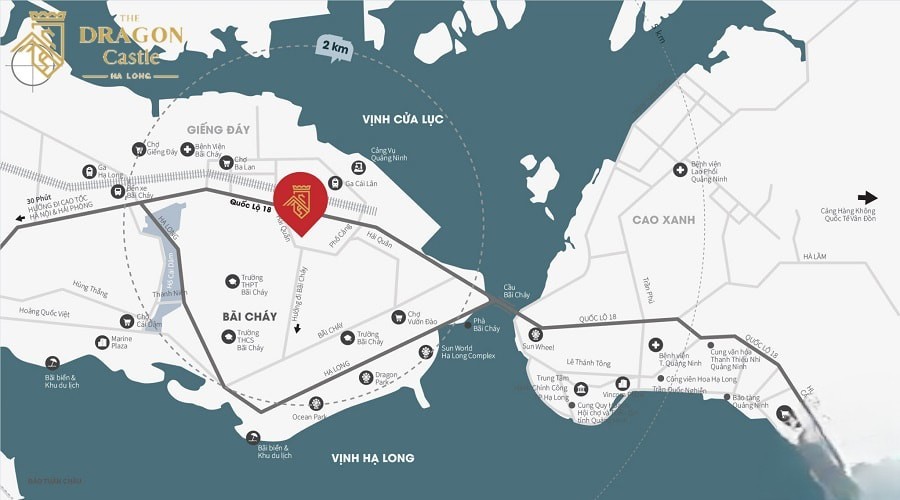 Dự án Chung cư Dragon Castle năm ngay quốc lộ 18 cửa ngõ đi vào trung tâm TP Hạ Long, nơi cư dân dễ dàng di chuyển đến những nơi du lịch, cơ quan hành chính của Hạ Long như: bãi tắm Bãi Cháy, vòng quay mặt trời, chợ Hạ Long, bệnh viện, bến xe…